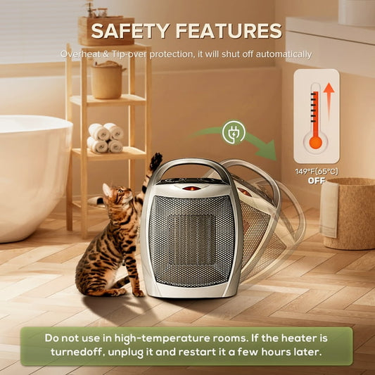 Electactic Compact 1500W/750W Space Heater with Thermostat - ETL Certified Ceramic Portable Heater Fan, Ideal for Home/Dorm/Office/Kitchen, Silver