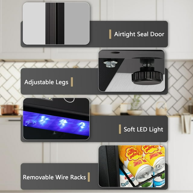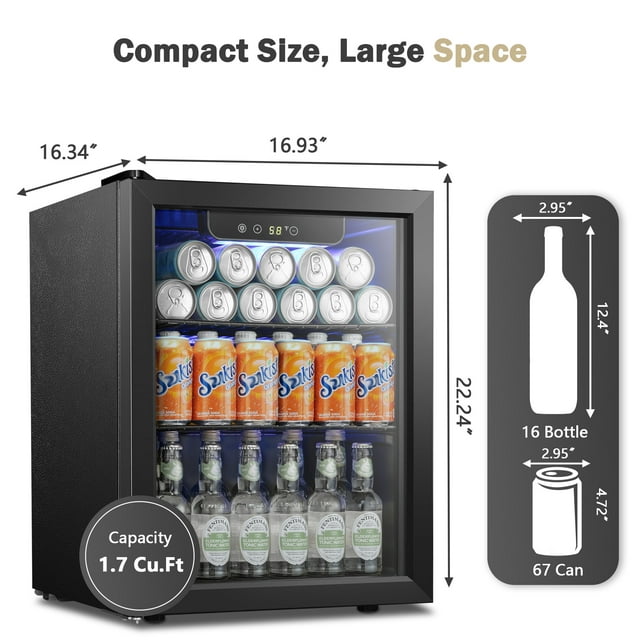 - Wine cabinet and beverage refrigerator can hold 16 bottles of red wine or 67 cans