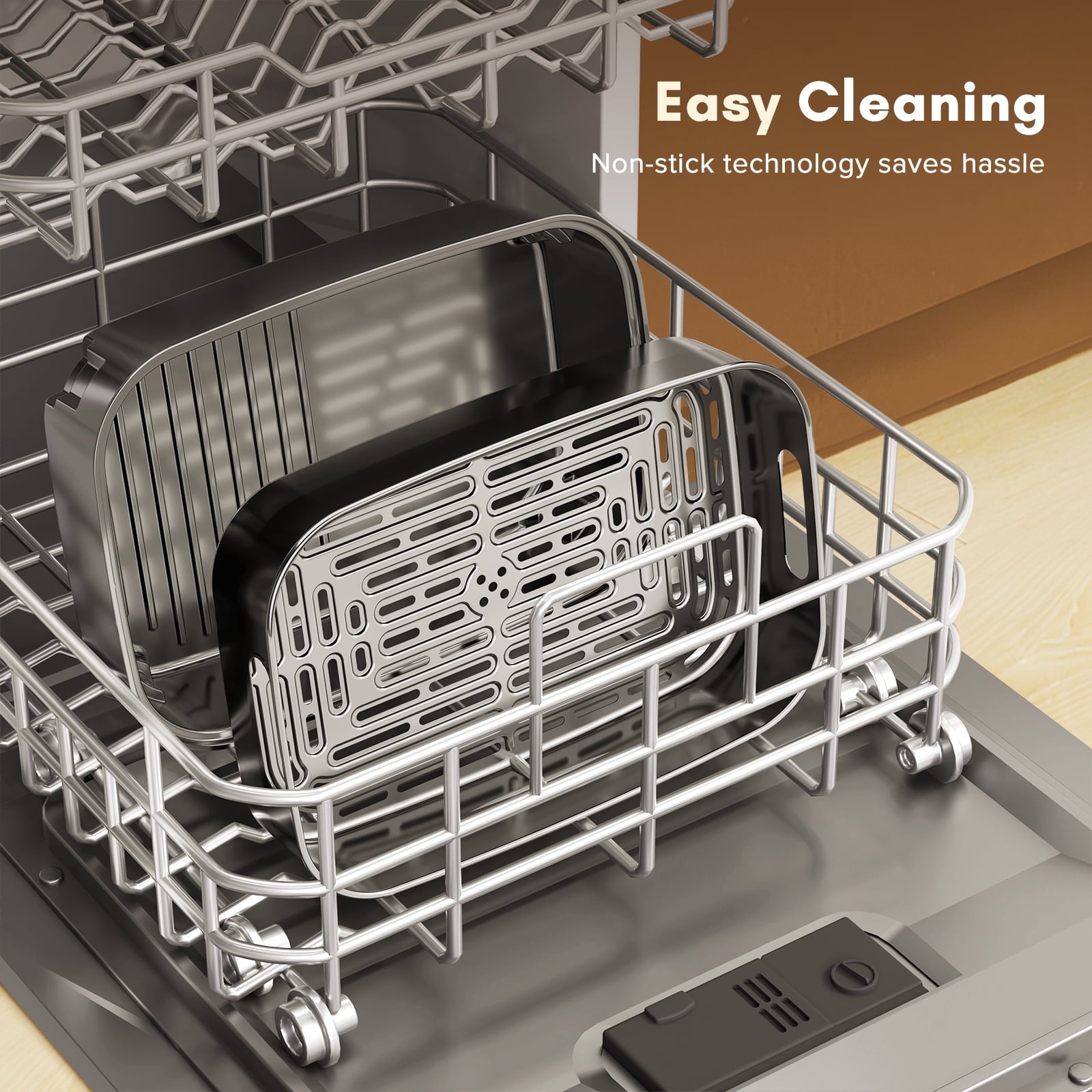 - Hassle-Free Cleaning: The cooking pot, frying basket, and oil separator feature a non-stick coating and are all dishwasher safe for easy cleanup. The main unit can be quickly wiped down with a damp cloth. To maintain the grill’s longevity, use a silicone scraper or clip to clean the grilling surface.