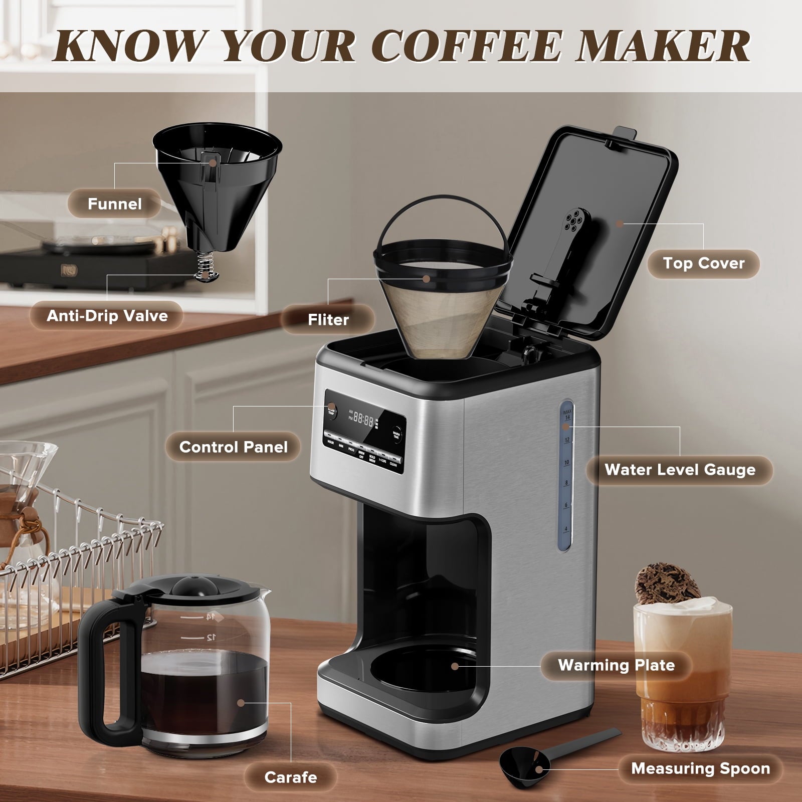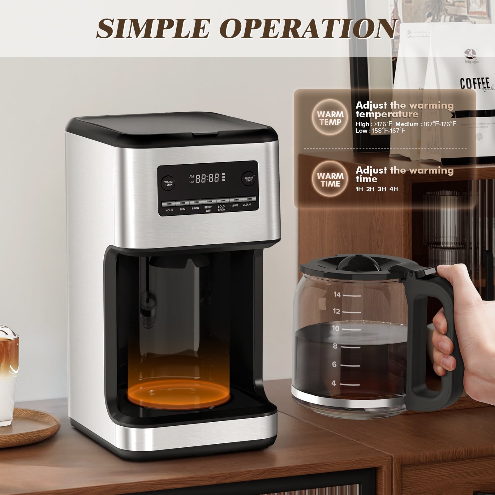 Multi-cup brewing, worry-free gathering: Using the 1-4 cup function to brew 14 cups of coffee, which can meet your needs whether it is brunch or quiet and exclusive.