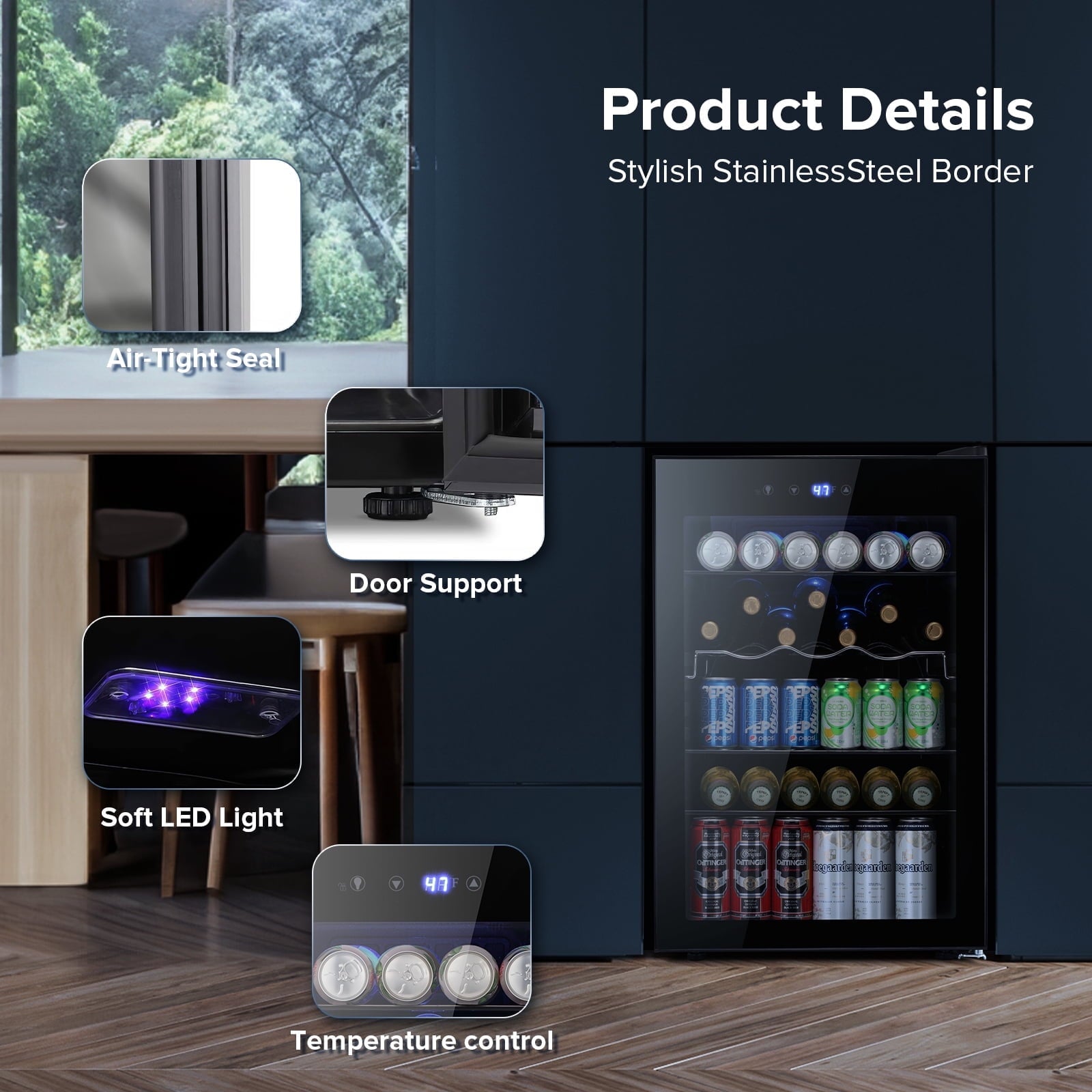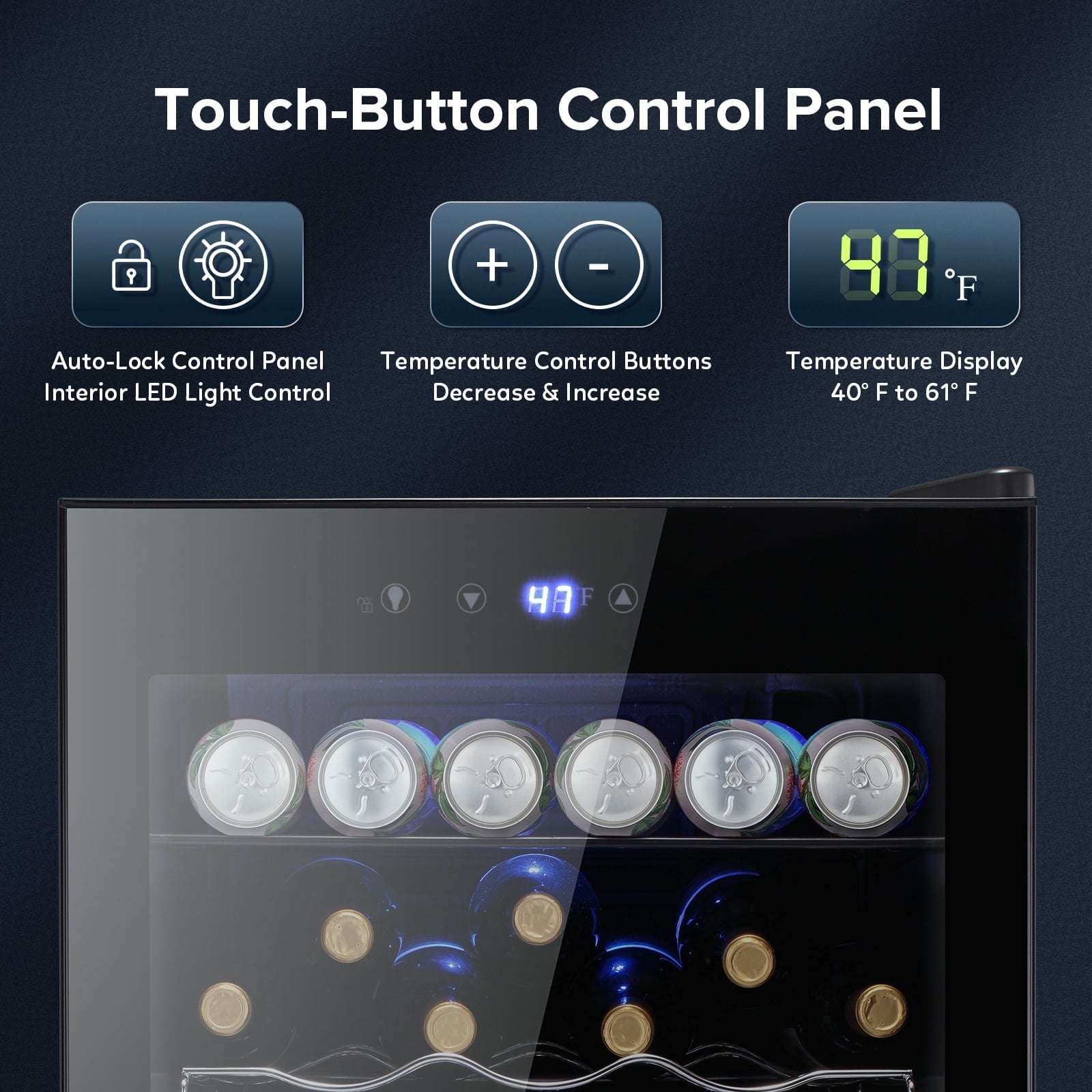 - 【Intelligent temperature control, cool at will】This refrigerator adopts advanced electronic temperature control system and intuitive digital display screen, which allows you to easily set and monitor the temperature, and adjust it freely from 40°F to 61°F, so as to ensure that your beverage always keeps the best taste. Air cooling technology makes the cooling more uniform, so that you can enjoy the refreshing feeling of ice at any time.
