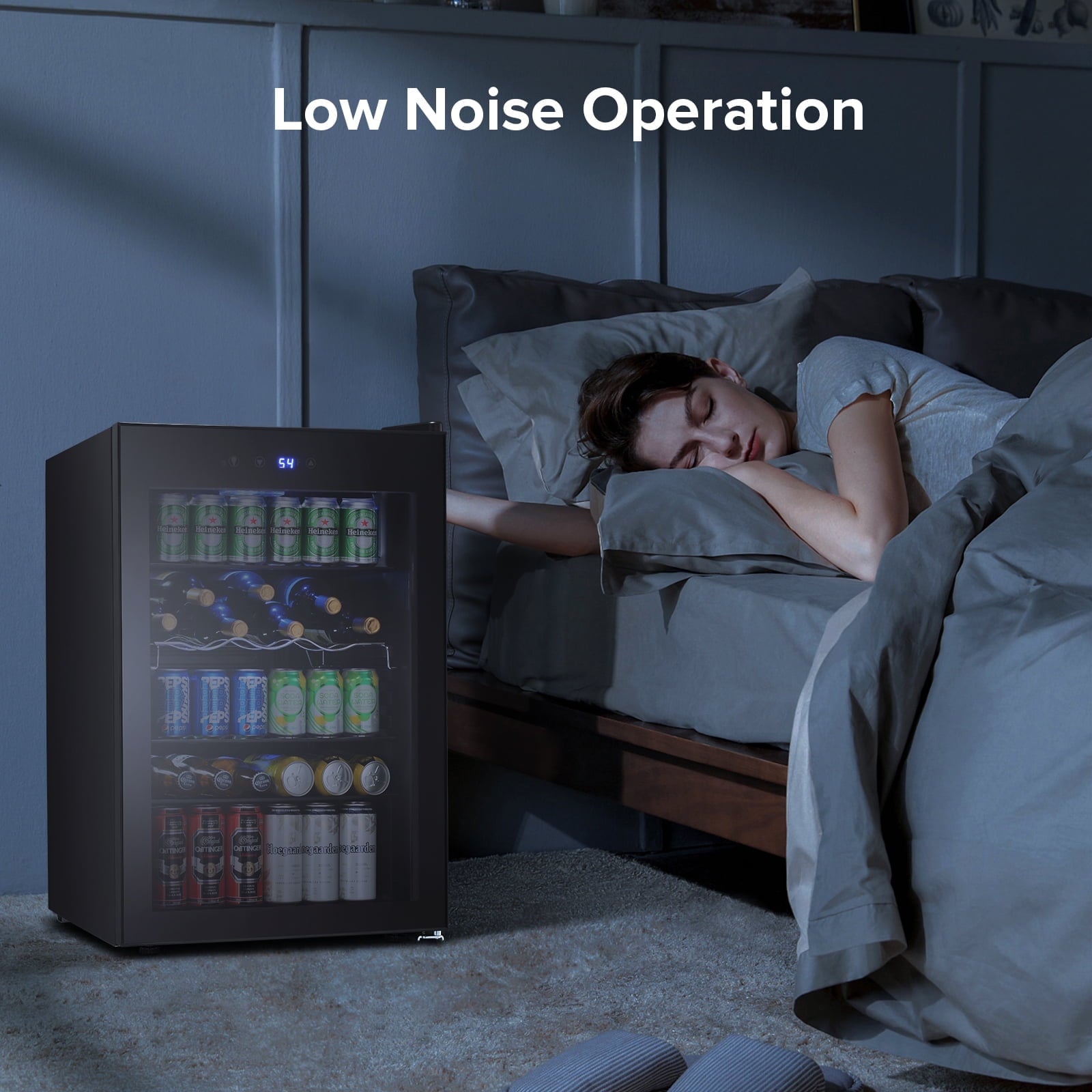 - 【Efficient and low noise, quiet life】The powerful and efficient compressor brings fast cooling effect, while maintaining low noise operation, less than 40 decibels, so that you can enjoy a quiet and comfortable life while enjoying iced drinks. Soft blue LED lights make it easy for you to find your favorite drinks at night.