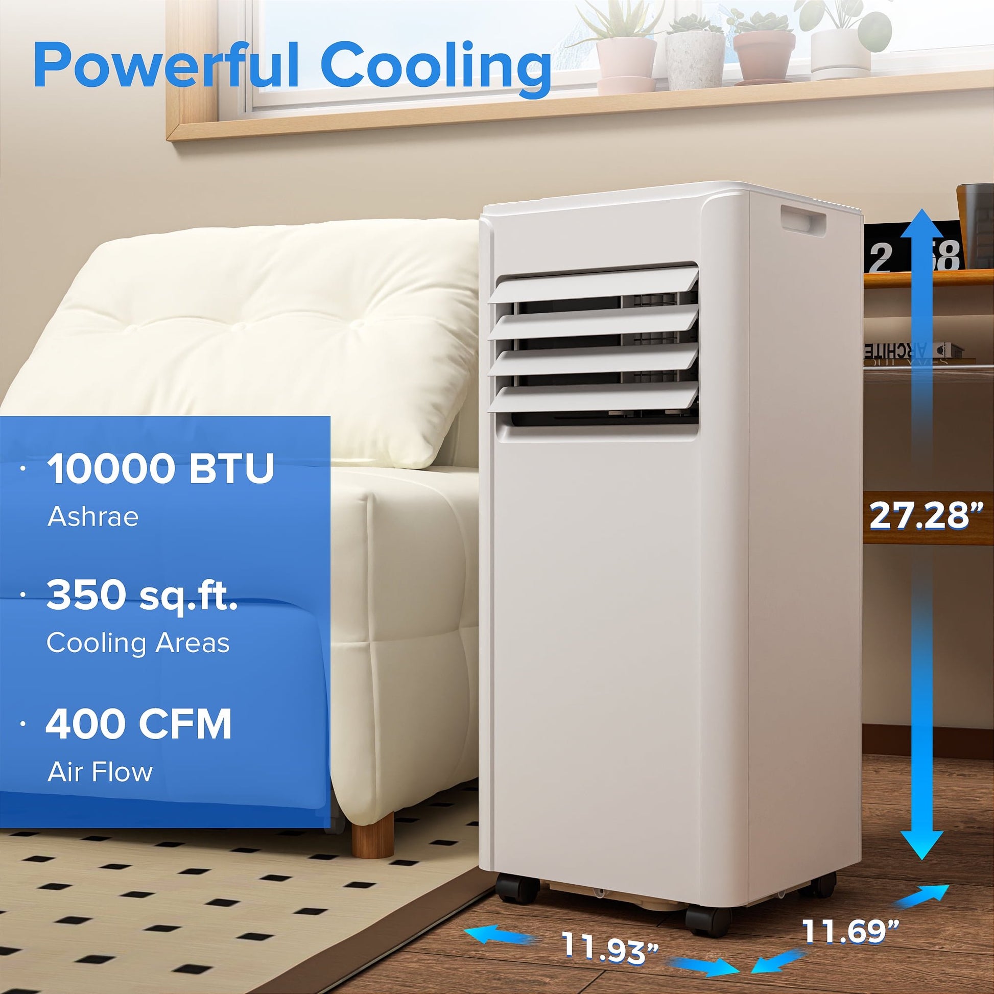 - 【4-in-1 Versatility】Experience powerful and efficient cooling with this portable air conditioner that covers spaces up to 350 sq.ft. Not only does it cool, but it also functions as a fan and dehumidifier, making it perfect for homes, bedrooms, offices, or cabins. Stay comfortable and beat the summer heat with its versatile cooling options.
