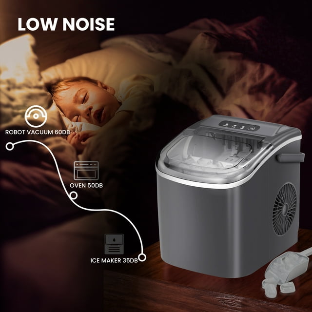 - Low Noise Ice Making - Away from noise pollution, the sound of ice making is lower than 40dB. Extremely quiet design will not affect your daily work or entertainment.