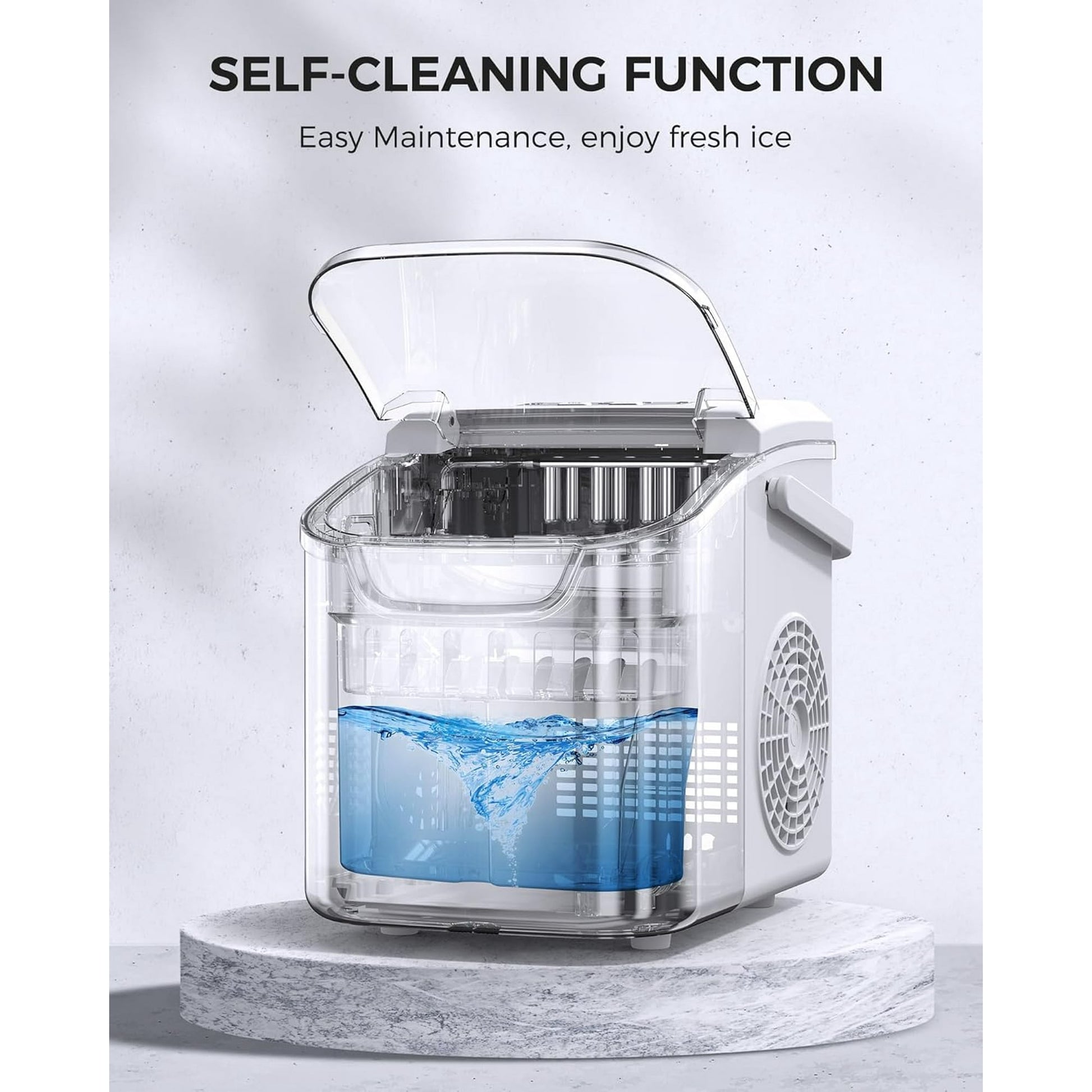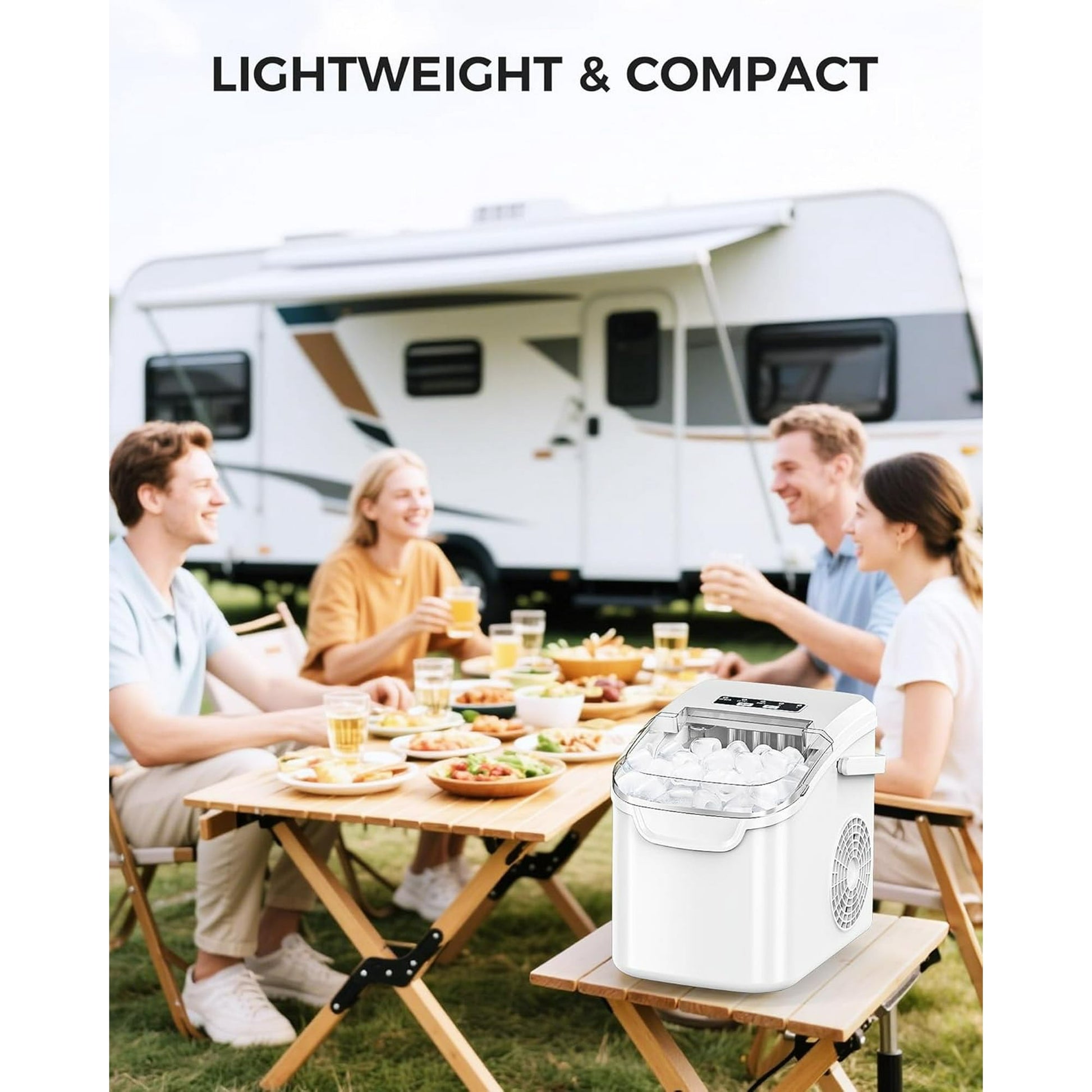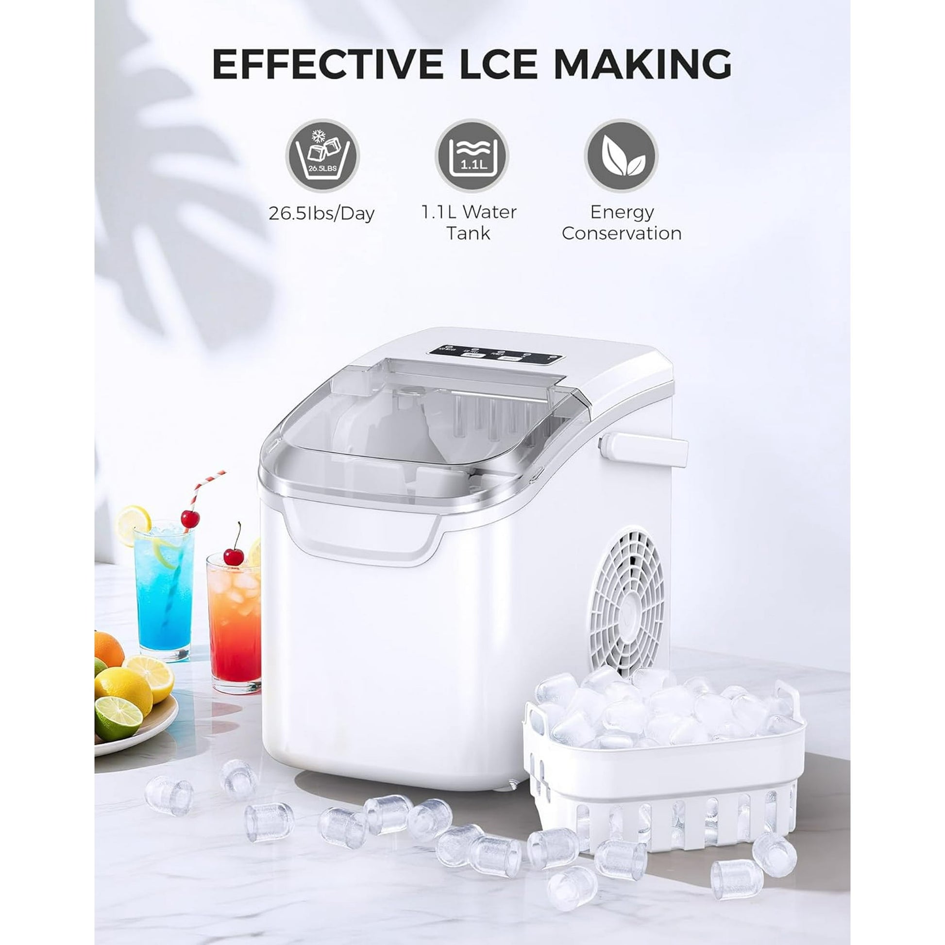Havato Ice Makers Countertop with Handle, 26.5 Lbs / 24 H, 8 Cubes in 6 Mins, Portable Machine with Self-Cleaning, Perfect for Home Kitchen (White)