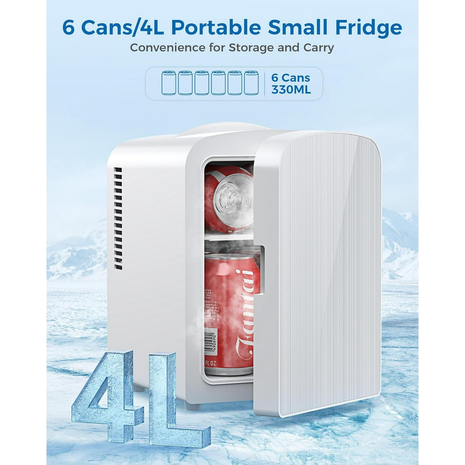 Havato Mini Fridge, Portable 4L/6 Can Electric Plug In Cooler & Warmer suit Office Desk & Dorm Room,for Food, Beverage, Skincare Beauty & Makeup,110 V AC/12 V DC Option for Bedroom - Car, White