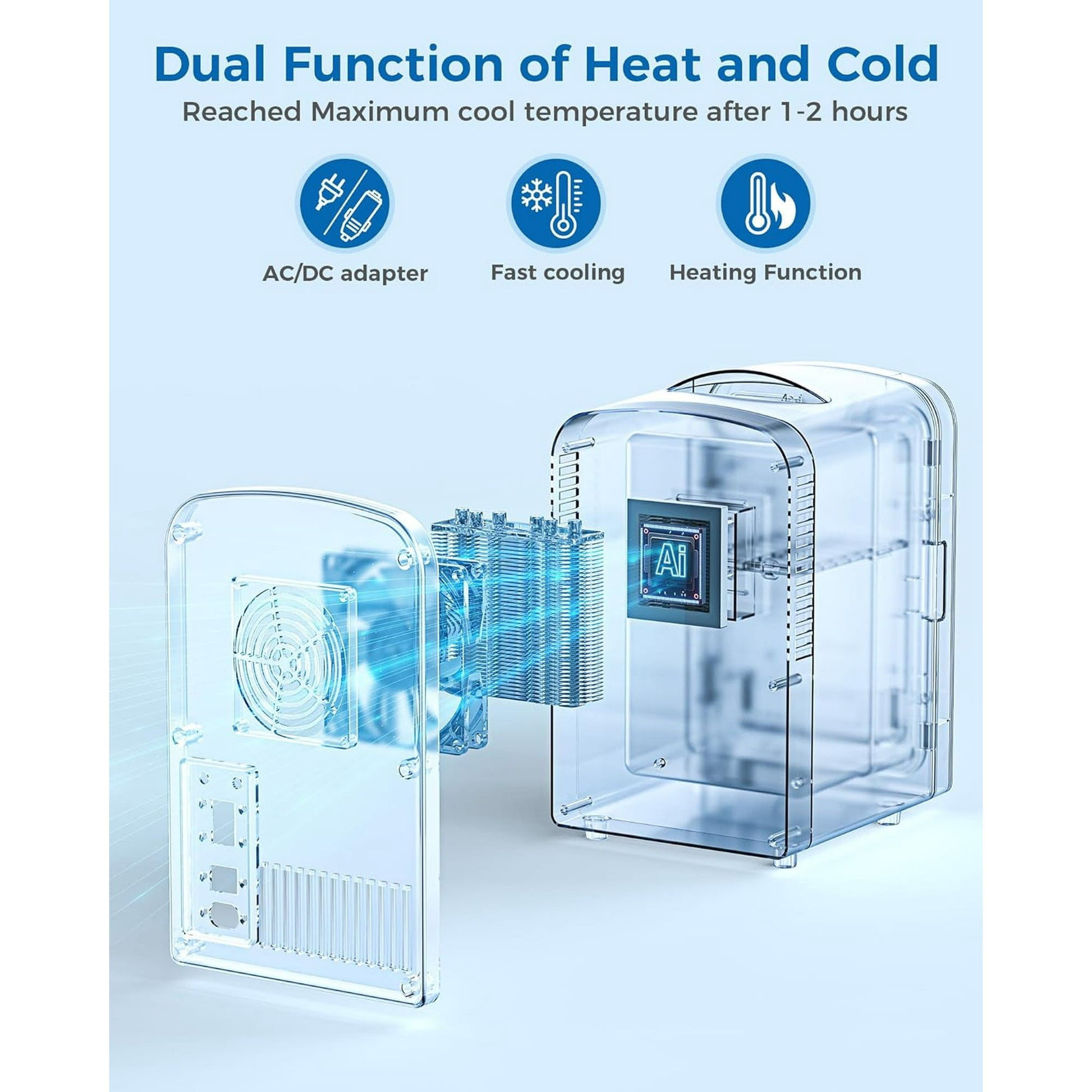 - 【Exterior Dimensions】: 10" x 7" x 10” ;Cooling Capacity: 59 º F-68 º F below ambient temperature;Warming Capacity: 125 º F-135 º F