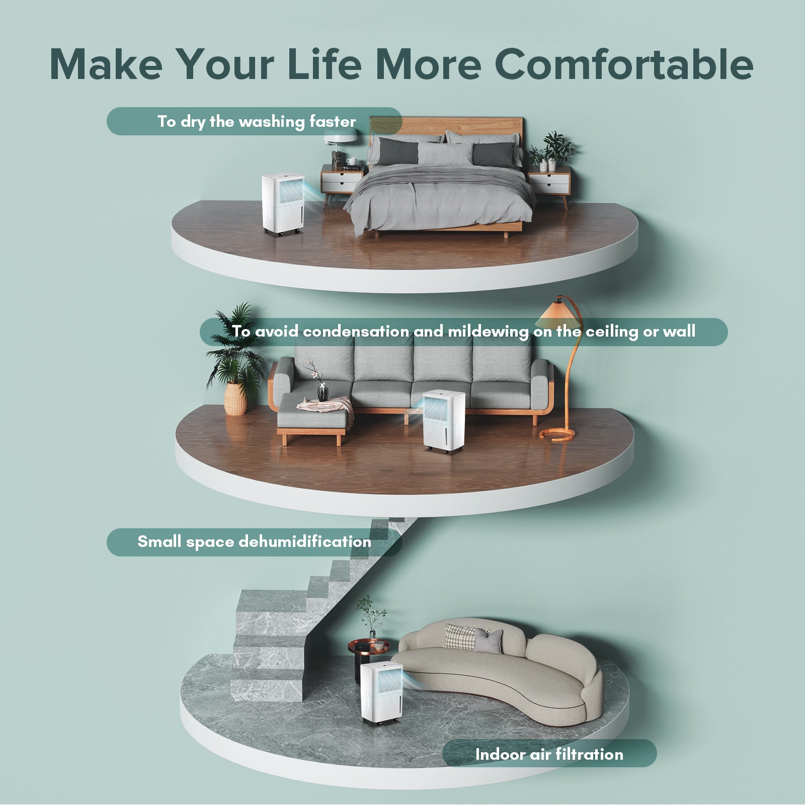🌵Small Size & High Power: Our dehumidifiers are only 16.73*10.63*8.15in, but it can remove 30 pints of water per day and are suitable for 1000 square feet of room. Provide you with the most comfortable environment without taking up too much space.