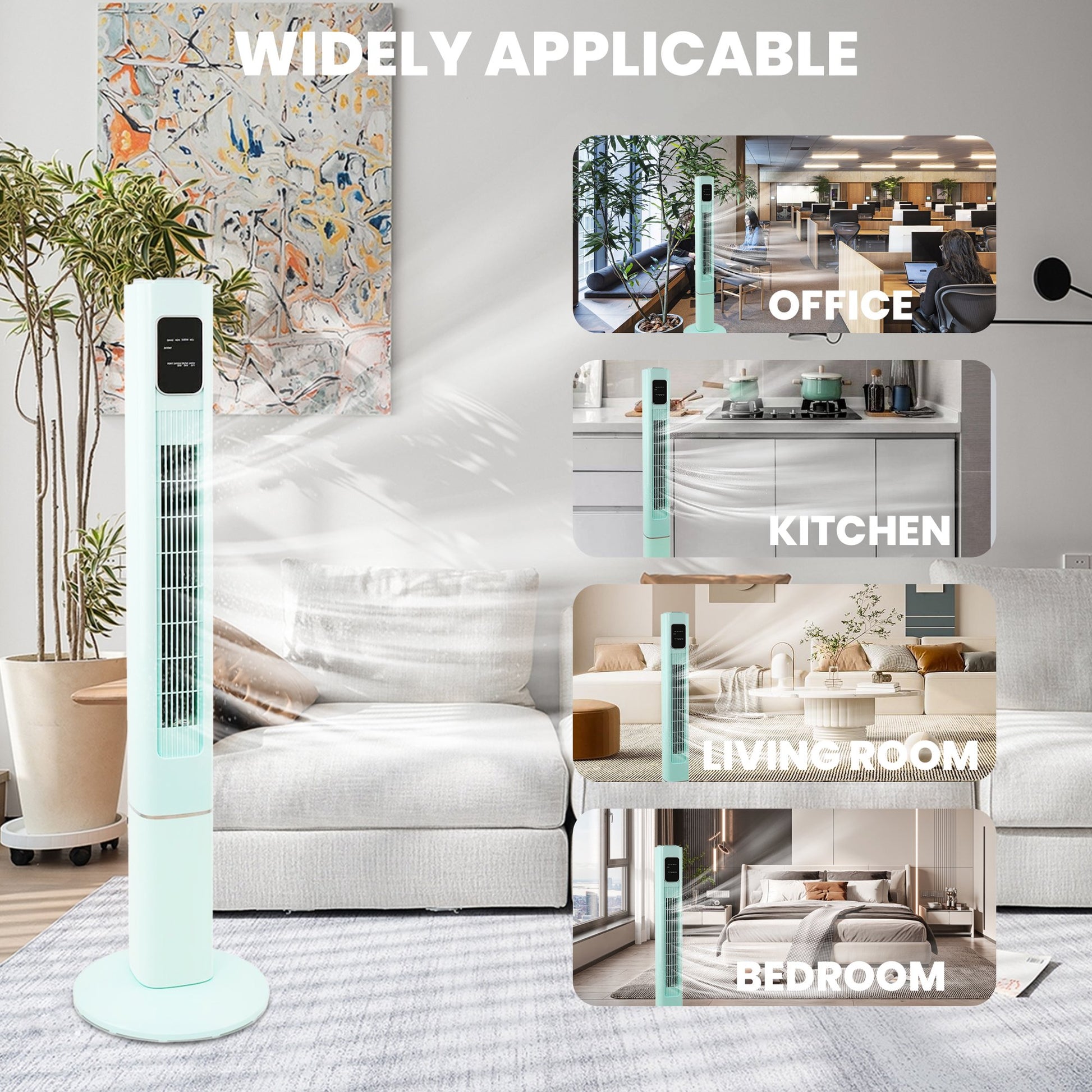 LHRIVER Tower Fan Oscillating Fan Quiet Cooling Remote Control Powerful Standing 3 Speeds Wind Modes Bladeless Floor Fans Portable Bladeless Fan for Children Bedroom Home Office (Green, 47")