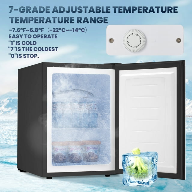 - 🦐Temperature Control: Adjustable 7-grade temperature control on the back of Freezer to select your desired temperature.“1” being the warmest and “7” being the coldest. Initially set the temperature on “4”. Temperature can be controlled from -7.6℉ to 6.8℉(- 14℃ to - 22℃)
