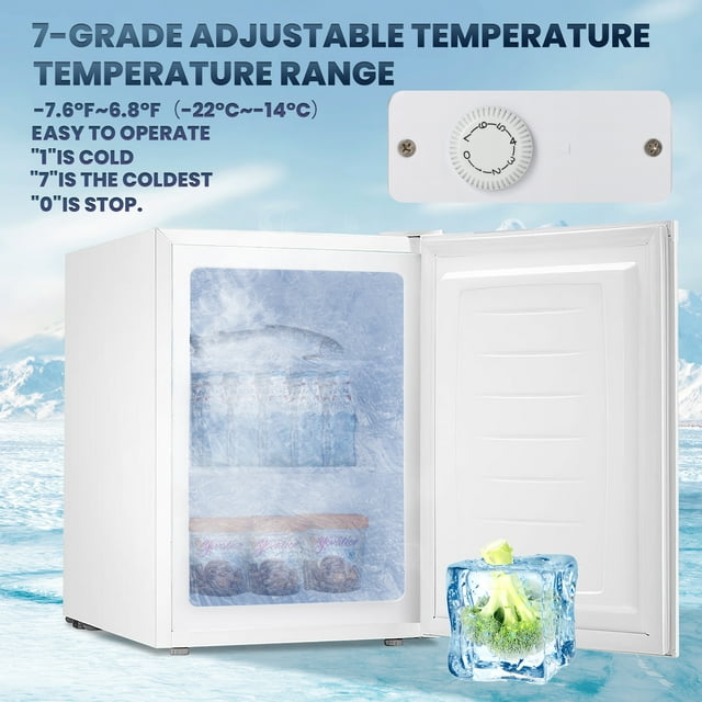 - 🦐Temperature Control: Adjustable 7-grade temperature control on the back of Freezer to select your desired temperature.“1” being the warmest and “7” being the coldest. Initially set the temperature on “4”. Temperature can be controlled from -7.6℉ to 6.8℉(- 14℃ to - 22℃)