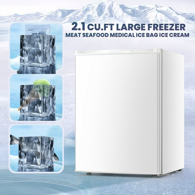 - 🦐Compact & Elegant Design:The Upright Freezer mini upright With 2 removable shelves and 2.1 cubic feet of capacity, the built-in three floors allow kitchen space, allowing you to keep all your frozen food nearby. Size: 17.5 L x 21.5 W x 25 H inches.